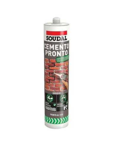 SILICONE CEMENTO PRONTO SOUDAL è un acrilico con struttura granulare simile al cemento, ideale per riparazioni veloci e facili o per riempire giunti e crepe nel calcestruzzo. Applicabile con cazzuola o pistola, può essere verniciato una volta asciutto. Non si restringe ed è adatto per utilizzi interni ed esterni.