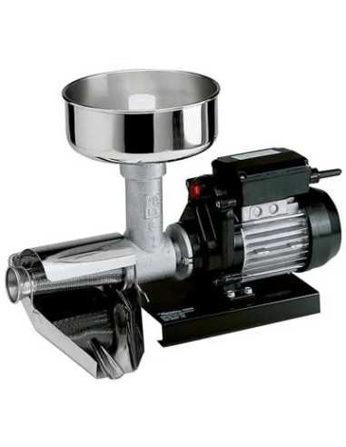 SpremiPomodoro 9008N è un potente spremipomodoro con motore elettrico ad induzione a servizio continuo, ideale per la produzione di passate e sughi. Il corpo in ghisa trattata per uso alimentare garantisce resistenza e durata nel tempo, mentre l'elica in resina acetalica assicura un contatto sicuro con gli alimenti. Dotato di filtro, sgocciolatoio e imbuto in acciaio inossidabile, è perfetto per una produzione da 70 a 140 Kg/h.