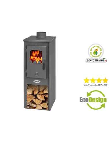 Stufe a legna K-Line Karso, con struttura in acciaio di colore antracite e camera di combustione in refrattario. Ideali per riscaldare ambienti fino a 67,6 mc con potenza di 5,2 Kw. Leggere e facili da installare, le stufe Karso offrono comfort e design in un unico prodotto.