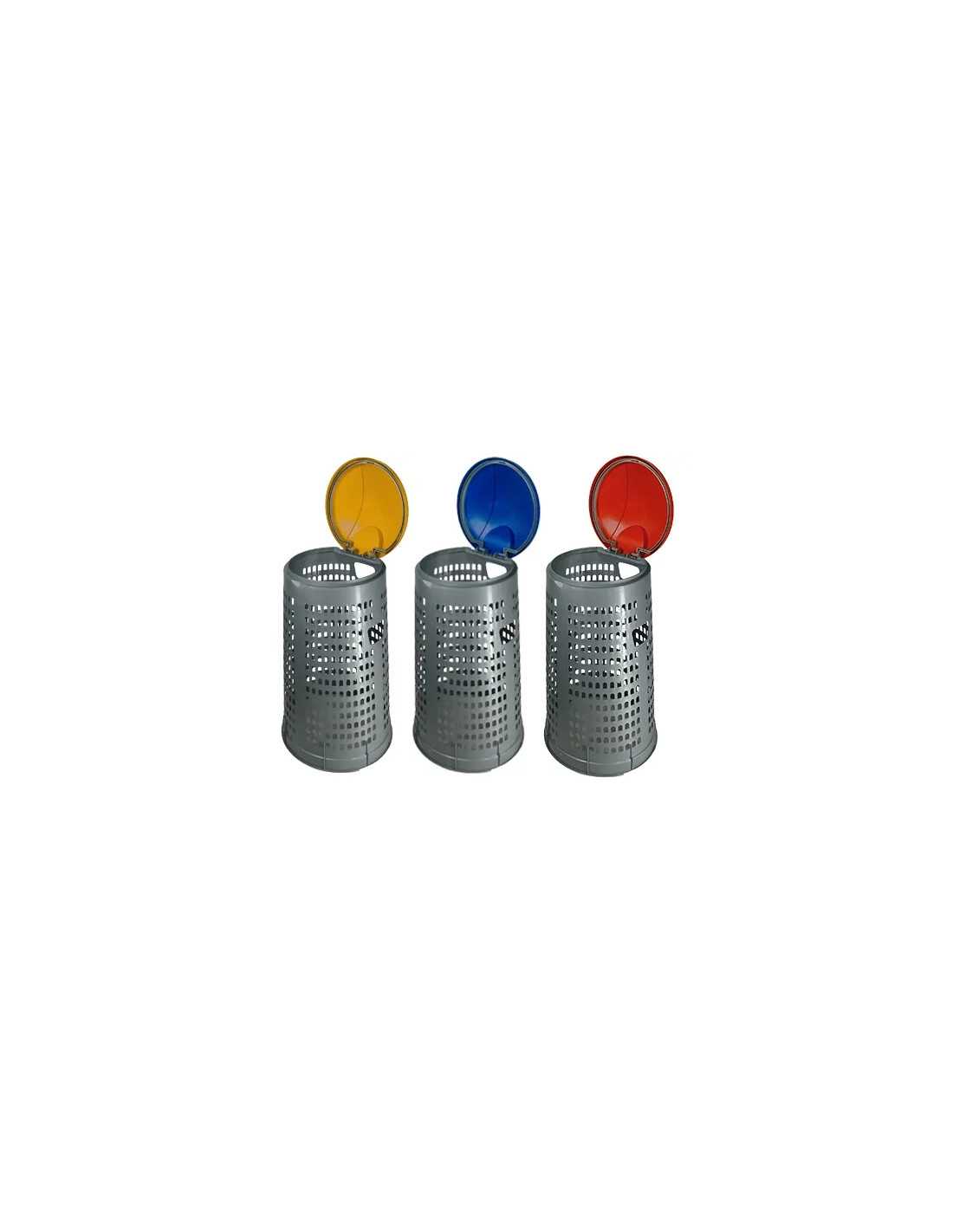 Trespoli bidoni portasacchi Tata con coperchio per la raccolta differenziata. Realizzati in materiale reciclato, questi trespoli sono impilabili e non richiedono montaggio. Ideali per organizzare i rifiuti in modo pratico ed ecologico.