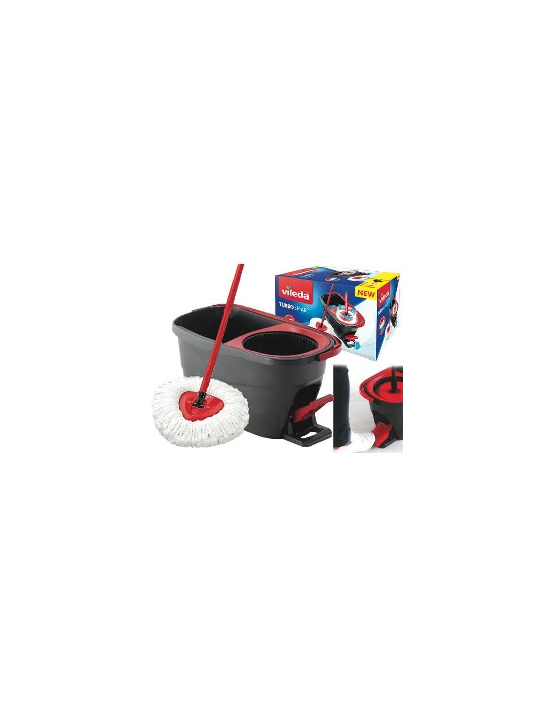 Vileda Sistema Turbo Smart è un innovativo lavapavimenti con un sistema di strizzatura a centrifuga attivabile tramite pedale integrato. Il kit include secchio, fiocco a frange in microfibra e manico 3 pezzi, per una pulizia efficace e senza fatica.