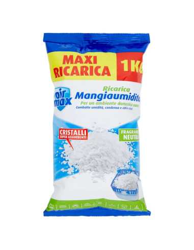 Benvenuti nel mondo di AIRMAX SALI RICARICA, la soluzione perfetta per mantenere i vostri ambienti liberi da umidità e cattivi odori. Questa ricarica di sali antiumidità è stata progettata con la massima cura per garantire un'efficacia senza pari. Grazie alla sua confezione pratica e facile da aprire e chiudere, potrete godere di un'aria fresca e pulita in ogni stanza della vostra casa.