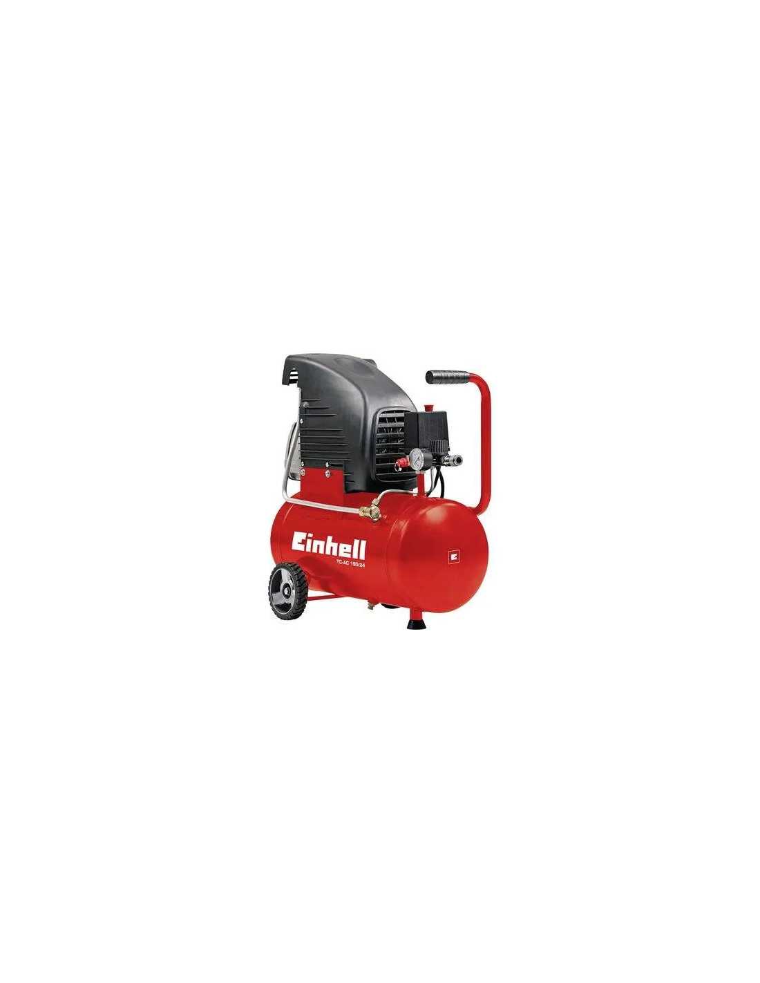 COMPRESSORE AC COASSIALE TC-AC 190/24 EINHELL è un compressore lubrificato con potenza di 1,5 kW (2 Hp), aspirazione da 160 Lt./Min e pressione massima di 8 bar. Leggero e compatto, è ideale per un utilizzo domestico e hobbistico. Con serbatoio garantito 10 anni contro la ruggine.
