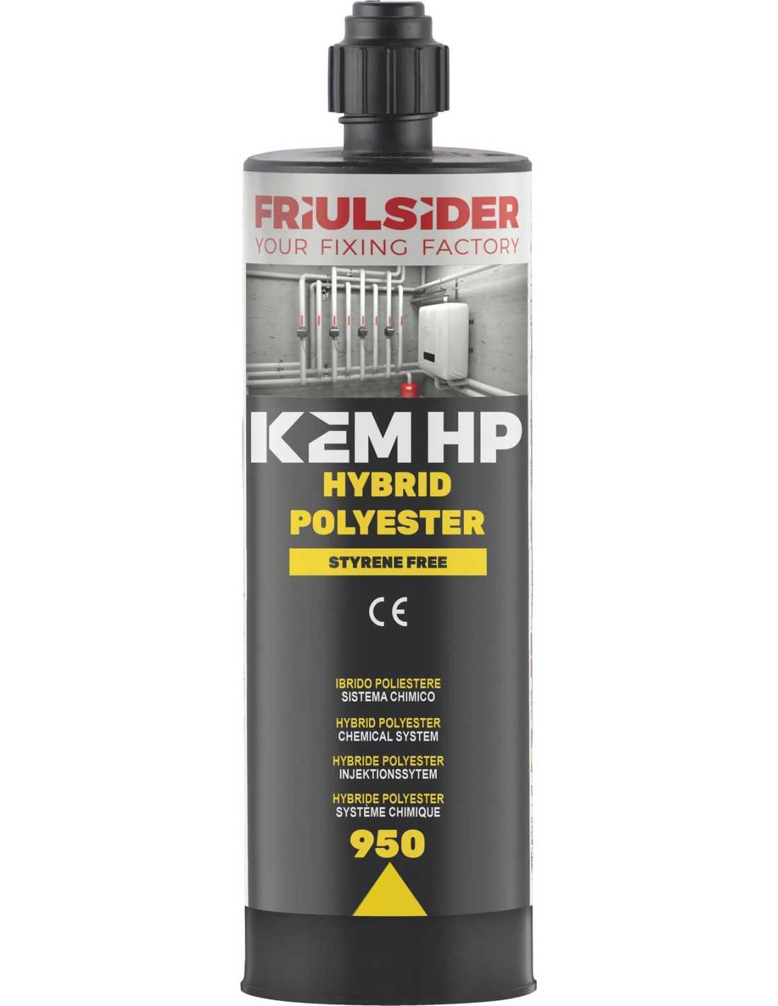 L'ancorante chimico bicomponente KEM 950 di Friulsider è un prodotto ad alte prestazioni, realizzato in resina di poliestere senza stirene. Ideale per l'ancoraggio di carichi medio pesanti su supporti pieni e forati, offre una sicurezza e resistenza superiori.
