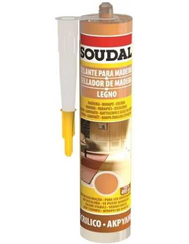 SILICONE ACRILICO SOUDAL LEGNO NOCE è un sigillante acrilico ideale per sigillare o stuccare legno all'interno. Perfetto per crepe, fessure o fori su travi a vista, parquet, cassonetti e altri elementi in legno.