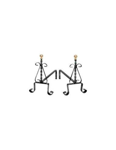 ALARI CAMINO TORTIGLIONE + RICCI è un elegante camino in ferro battuto verniciato con pomi in ottone, ideale per riscaldare e arredare con stile il tuo ambiente.