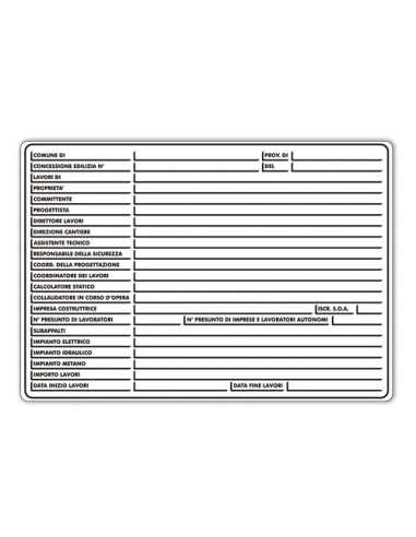 Indispensabile per ottemperare alle normative nazionali, questo cartello è completo di tutte le diciture richieste, come previsto dalla circolare del Ministero dei Lavori Pubblici n° 1729/UL e dal D.Lgs. 494/96. Rispettando le norme vigenti, questo prodotto si rivela fondamentale per le concessioni edili, assicurando la massima conformità alle disposizioni in vigore.
