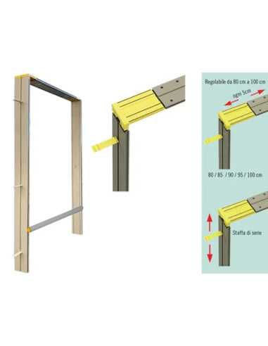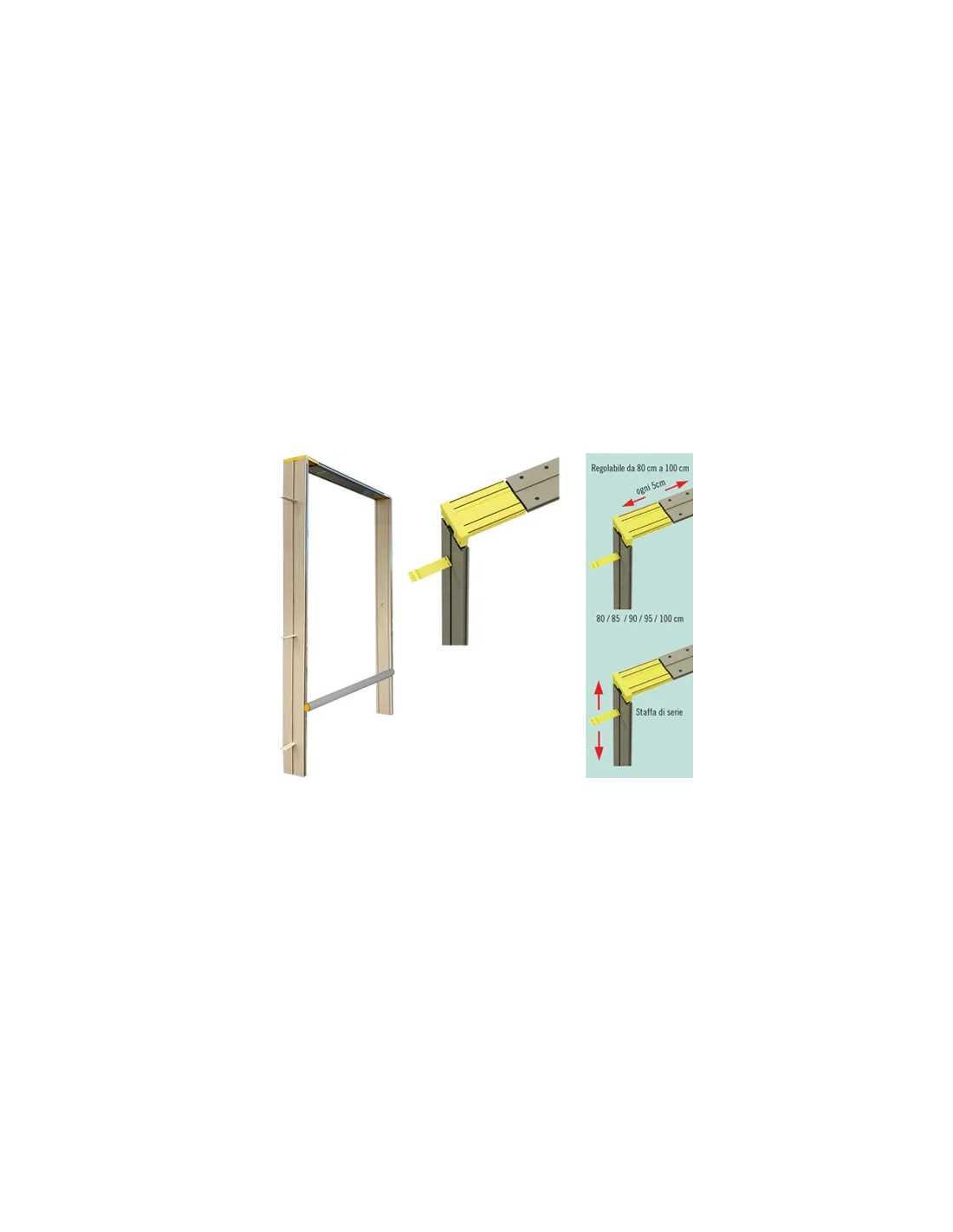 Controtelai in PVC per porte, adatti a diverse larghezze e facili da montare senza attrezzi. Ideali per porte di varie dimensioni, inclusi accessori per il montaggio.