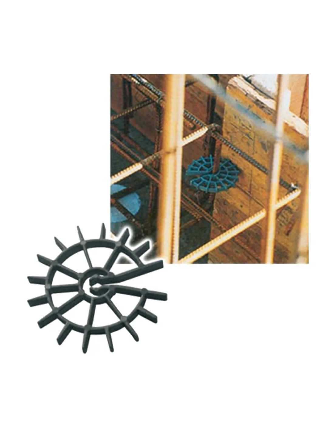Distanziatore per cassero circolare ideale per garantire la corretta distanza tra l'armatura metallica verticale e il cassero. Realizzato in PE HD, ha dimensioni di mm 50 x h.8 e può essere utilizzato con tondini di diametro compreso tra 4 mm e 8 mm.