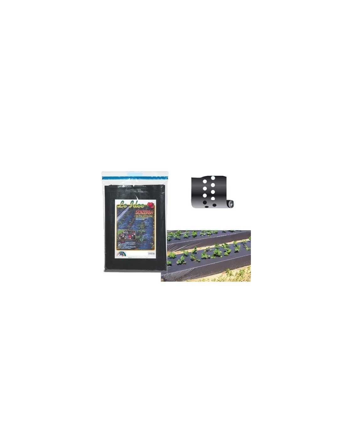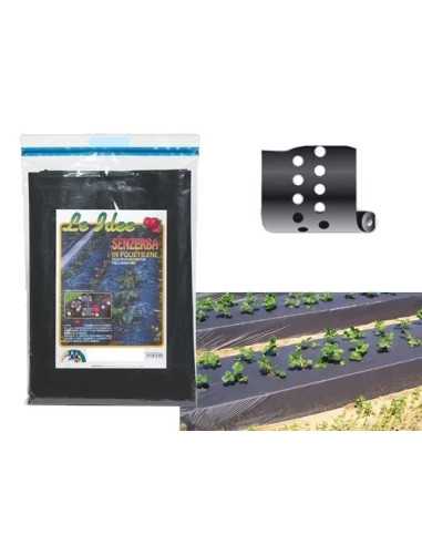 Foglia Nera Fori Sfalzati è una soluzione di pacciamatura in polietilene nero a bassa densità con fori Ø 80 mm disposti in modo sfalsato. Questo materiale impedisce la crescita di piante infestanti, riduce il fabbisogno idrico delle piante e elimina la necessità di utilizzare prodotti chimici nocivi per l'ambiente.