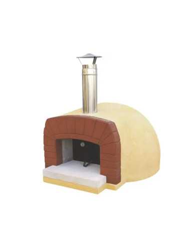 Dotato di isolamento termico in lana di roccia, questo forno presenta un design accattivante con arco bocca in argilla espansa colorato finto mattoni e una porta in acciaio con termometro integrato. La canna fumaria con comignolo in acciaio inox assicura un'efficace evacuazione dei fumi, mentre il piano cottura di ampio diametro consente di cuocere diverse pietanze contemporaneamente.