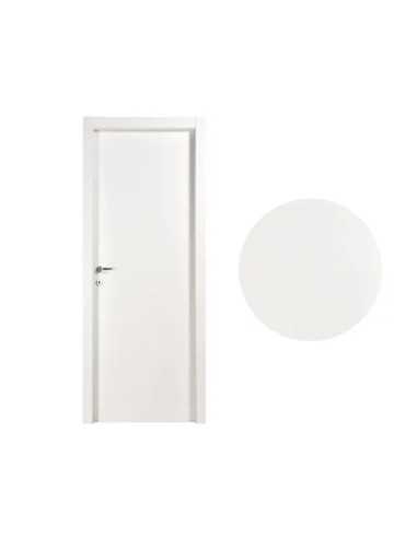 Porte a battente bianche con struttura in abete e serratura meccanica verniciata silver. Kit completo con montanti in MDF, cerniere anuba reversibili e mostre coprifili in MDF.