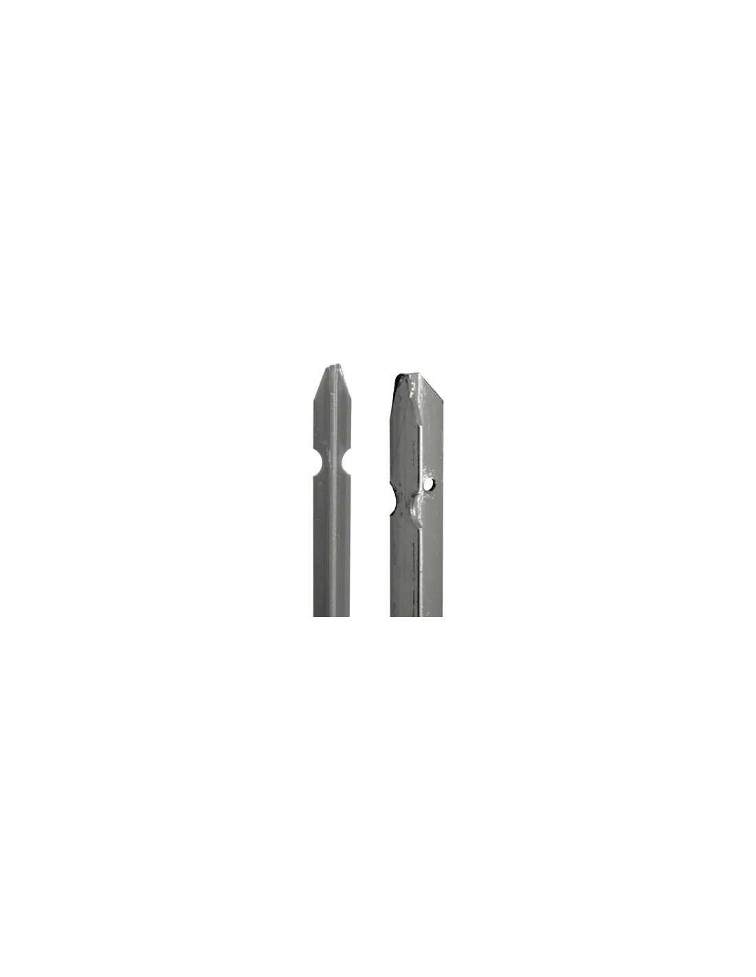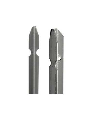 Paletti zincati per recinzioni sezione T. Realizzati in acciaio zincato, sagomati in punta e con fori per il fissaggio della rete. Ideali per garantire resistenza e durabilità alla tua recinzione.