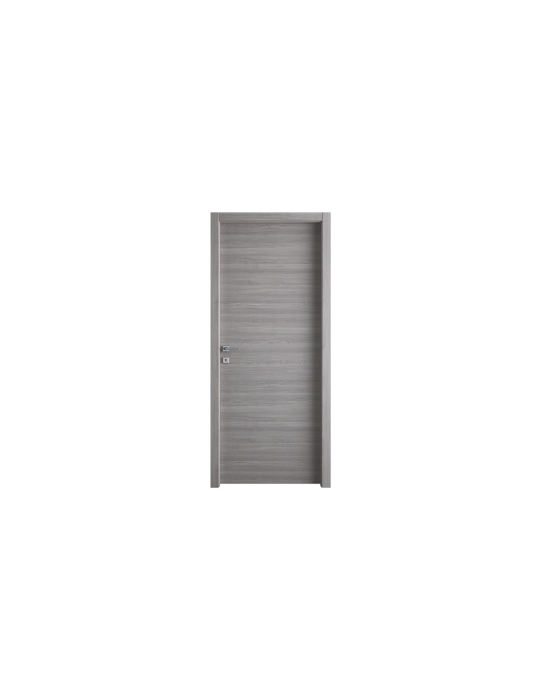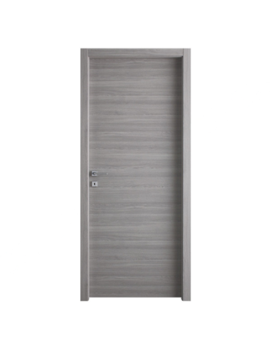 Porta battente completa dotata di telaio reversibile piatto in MDF da 40 mm, con pannello in fibra a media densità e guarnizione in battuta antirumore che assicura un miglior isolamento acustico. Le cornici telescopiche sono realizzate in MDF 70×10 mm.