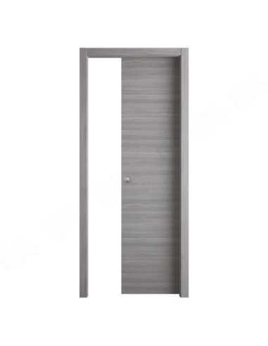 Porta scorrevole in MDF con telaio reversibile, isolamento acustico e kit maniglie incluso. Ideale per installazioni pratiche e moderne.