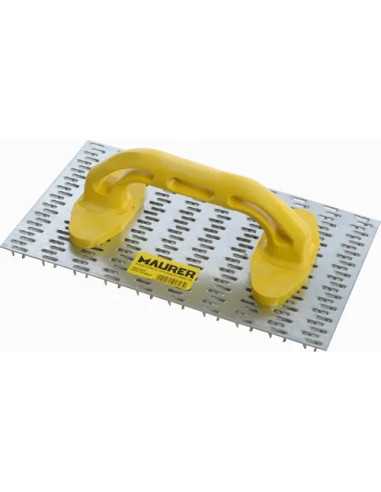 Rasatore Maurer in acciaio per intonaco con manico in poliuretano e lama dentata multidente, ideale per rifinire le superfici in modo preciso e professionale.