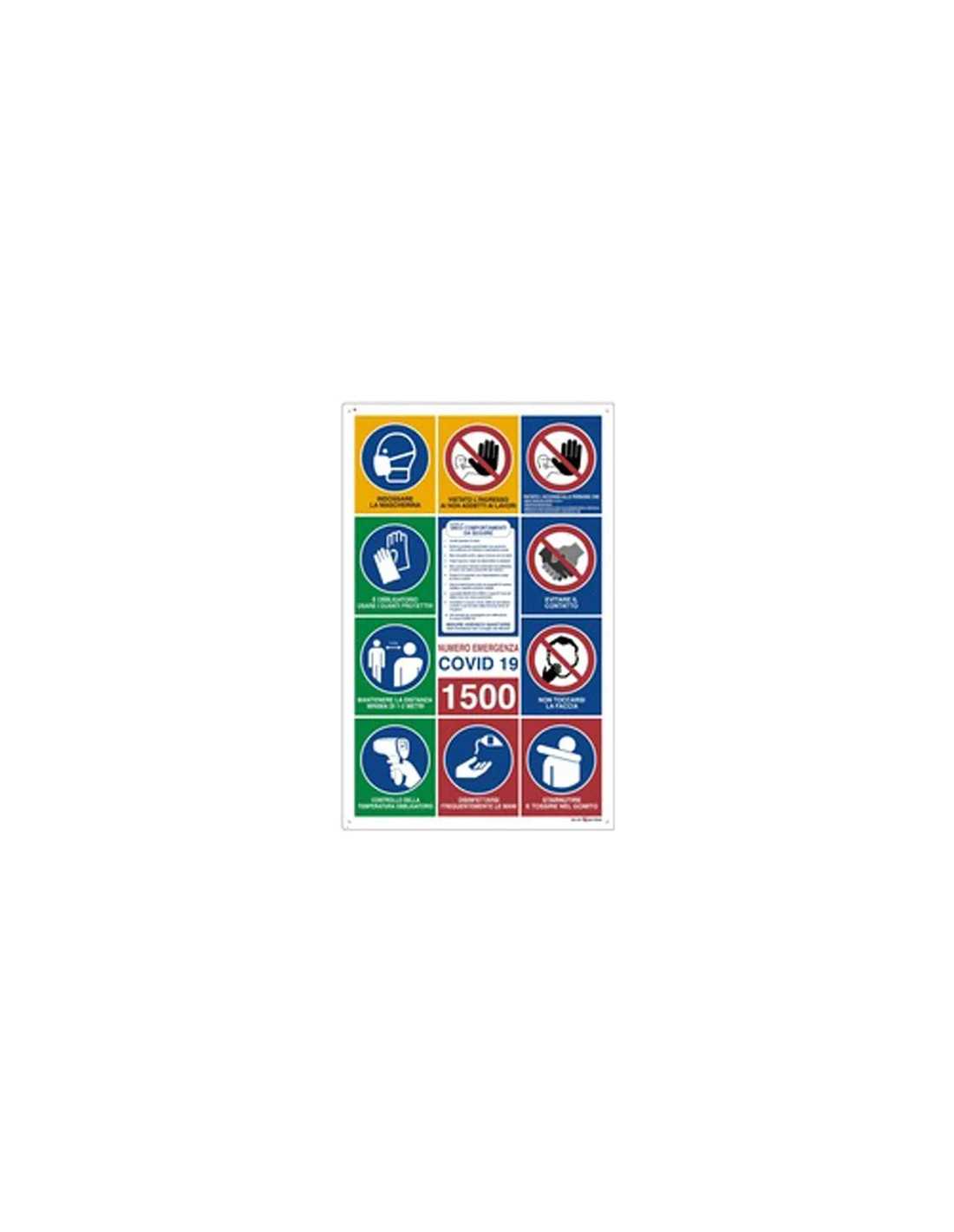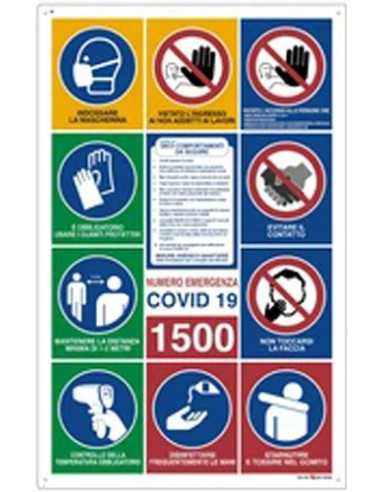 Segnaletica cantiere con 11 simboli legati al COVID-19 realizzata in resistente polionda, ideale per garantire la sicurezza sul luogo di lavoro. Dimensioni 138x88 cm.