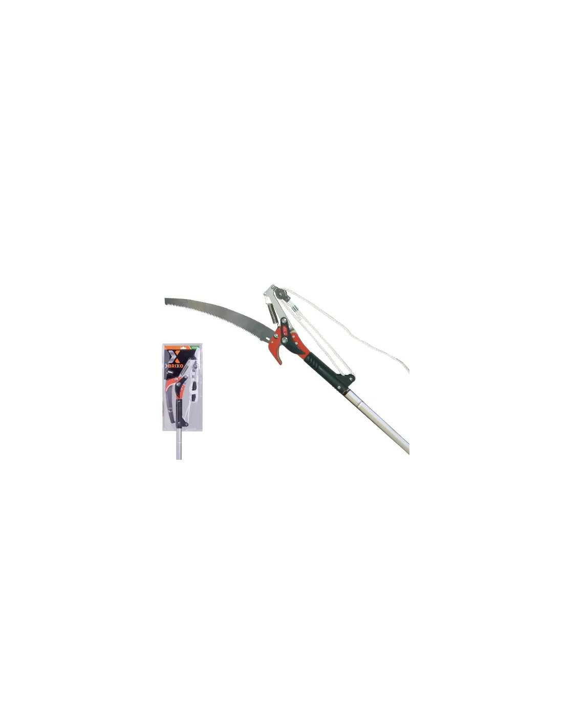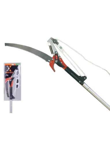 Svettatoi Brixo con segaccio e manico telescopico, ideale per tagliare rami con facilità e precisione.