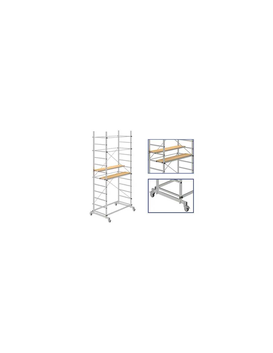 Questo fantastico prodotto offre una solida struttura composta da telai laterali e pioli in alluminio, garantendo resistenza e sicurezza durante il lavoro. Le ruote con freno assicurano stabilità e facilità di spostamento, mentre le correnti e diagonali di collegamento in acciaio zincato garantiscono una maggiore durata nel tempo. Il piano di lavoro con pianale in legno antiscivolo offre un'ampia area di lavoro, ideale per svolgere diverse attività con comodità. Con una capacità di carico fino a 150 Kg, questo prodotto è perfetto per svariati utilizzi in ambito professionale o hobbistico.