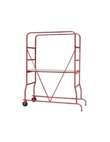 Trabattelli Archimede acciaio in acciaio tubolare verniciato con piano in legno massiccio, dotato di fermo di sicurezza e due ruote per facilitare gli spostamenti. Ideale per lavori in altezza.