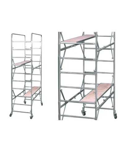 Trabattelli Gigant in acciaio zincato, ideali per lavori professionali e fai da te. Facili da montare e smontare, con minimo ingombro e dotati di due ruote con freno. Con doppio piano di lavoro e montanti in tubo acciaio Ø 30 mm.