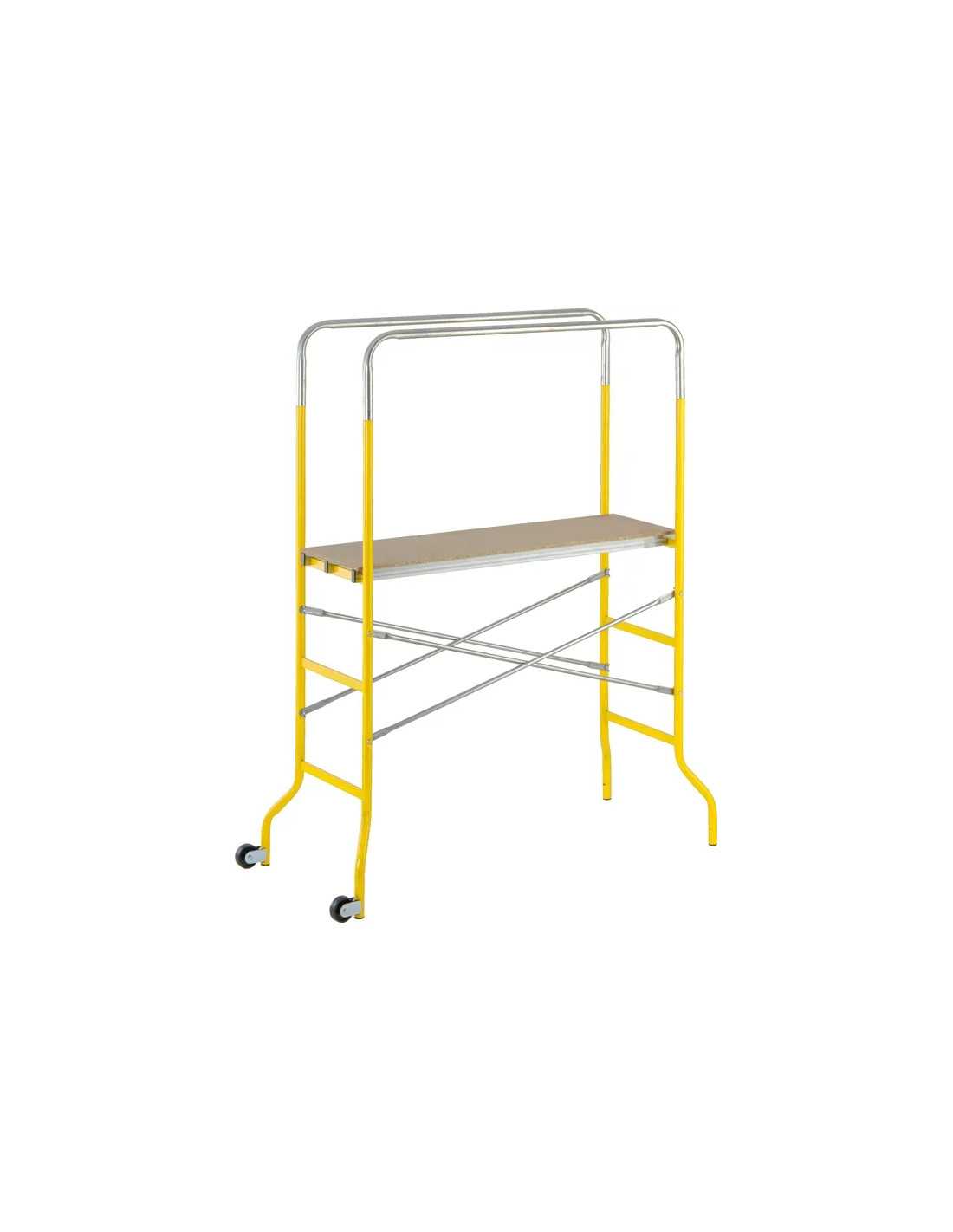 Il piano di lavoro in legno incluso fornisce un'ampia superficie su cui lavorare comodamente. Le ruote integrate consentono di spostare il trabattello con facilità da un punto all'altro, rendendo il lavoro più efficiente e pratico. Con un'altezza totale di 179 cm e un'altezza al piano di calpestio di 137 cm, questo trabattello offre la giusta altezza per svolgere lavori in sicurezza.