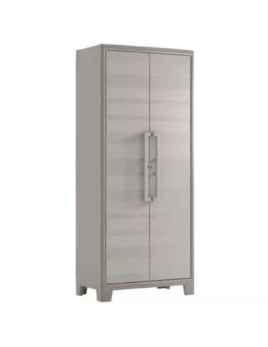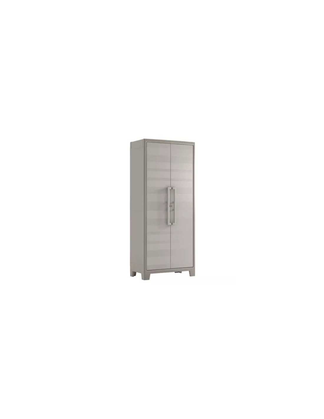 ARMADIO MULTISPACE IMPERMEABILE GULLIVER KETER è un armadio in plastica resistente di colore grigio con finitura legno, dotato di due ante e 8 ripiani regolabili. Ideale per riporre oggetti all'aperto e resistente alla pioggia. Con piedini regolabili rialzati e predisposizione per lucchetto.