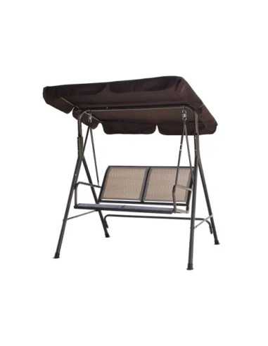 DONDOLI 2 POSTI OASI è un elegante dondolo con struttura in acciaio verniciato marrone, dotato di un comodo parasole in poliestere e rivestimento in Textline. Ideale per rilassarsi all'aria aperta in compagnia, con una capacità massima di 300 Kg.