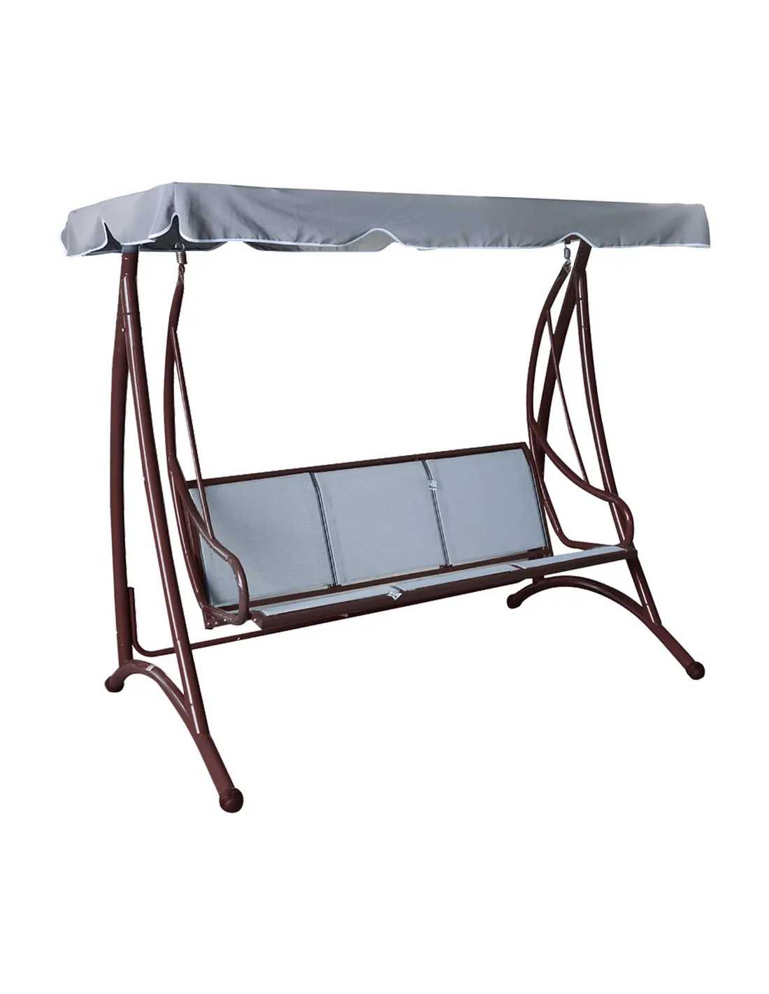 Dondolo 'KUTA' è un comodo dondolo a 3 posti, ideale per rilassarsi all'aperto. Dotato di struttura resistente in acciaio e tessuto in textilene, completo di tendalino per ripararsi dal sole. Perfetto per momenti di relax in giardino o in terrazza.