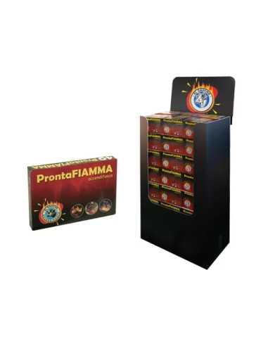 Espositore El Gaucho Accendifuoco ProntaFiamma con 40 cubetti pronti all'uso per accendere il fuoco facilmente e rapidamente.