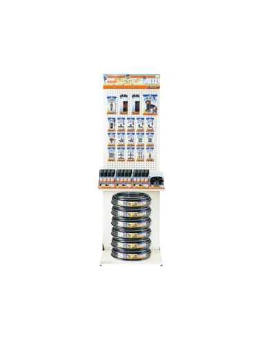 Espositore Claber Colibrì con 19 Referenze e 328 pezzi, completo di ganci e cartellonistica a colori. Ideale per mostrare in modo professionale i prodotti Claber.