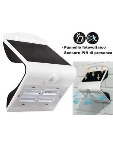 Faretti Solari Arcadia 3,2 Watt con corpo resistente agli urti e sensore PIR per accensione automatica. Ideali per illuminare il tuo giardino in modo efficiente e ecologico.