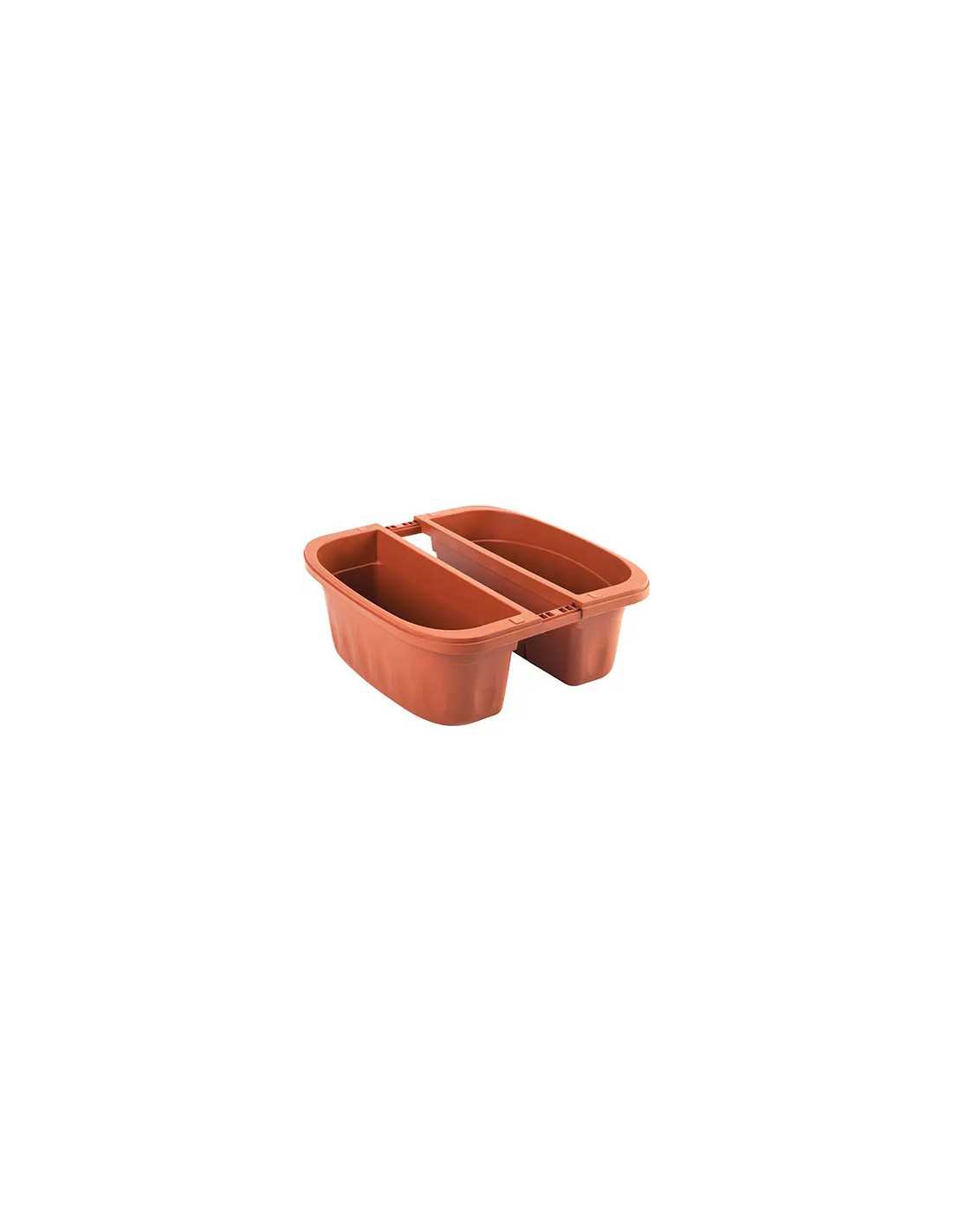 FIORIERA DOPPIA KLUNIA BAMA è realizzata in polipropilene di colore terracotta, ideale per decorare balconi sia all'esterno che all'interno. Dotata di braccetti regolabili, leva posteriore per stabilità e riserva d'acqua interna. Resistente agli agenti atmosferici e ai raggi solari, con garanzia di 3 anni.