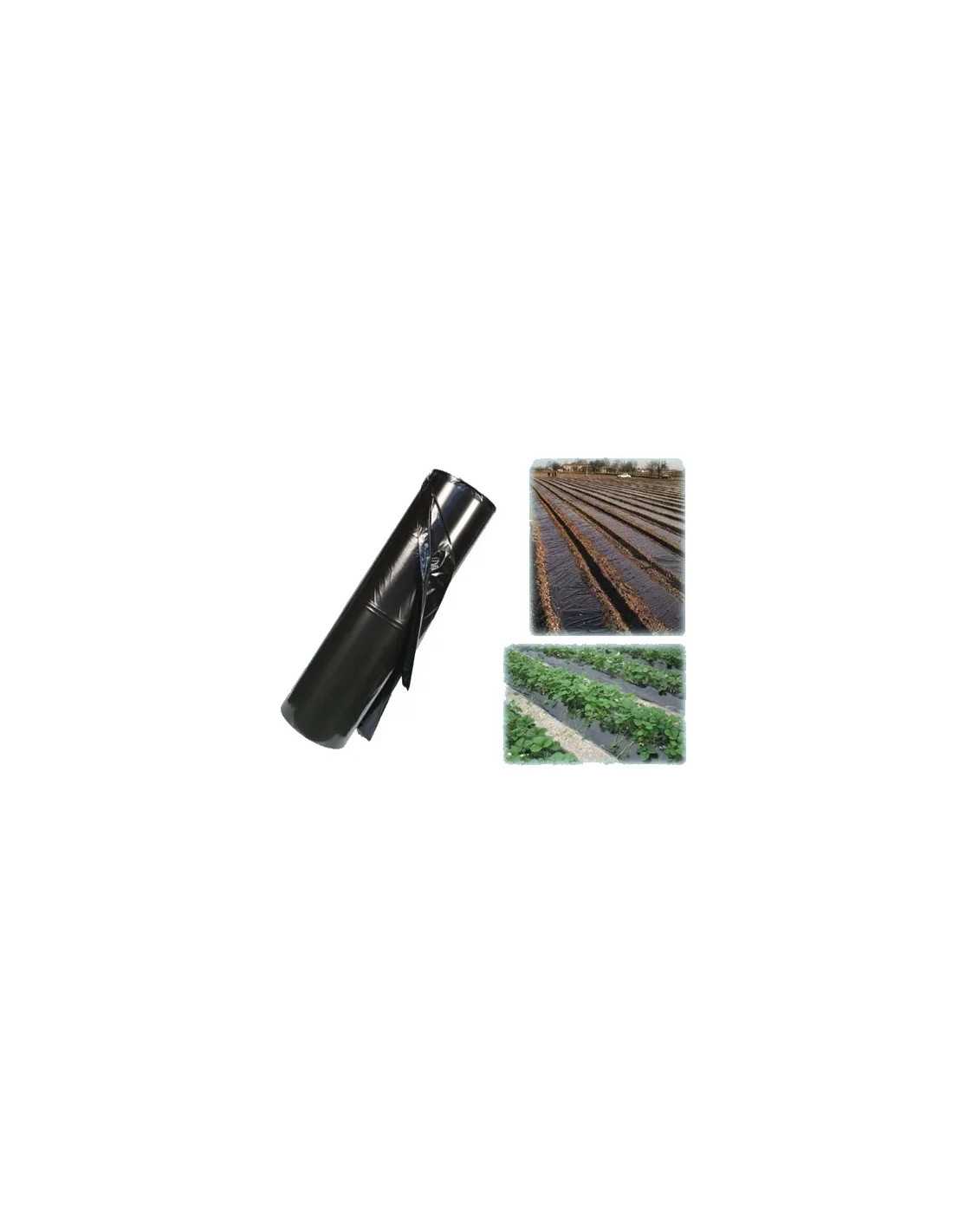 Foglia pacciamatura nera in polietilene a bassa densità, ideale per la pacciamatura. Con uno spessore di 0,06 mm, impedisce la crescita di piante infestanti, riducendo il fabbisogno idrico delle piante e evitando l'uso di prodotti chimici.