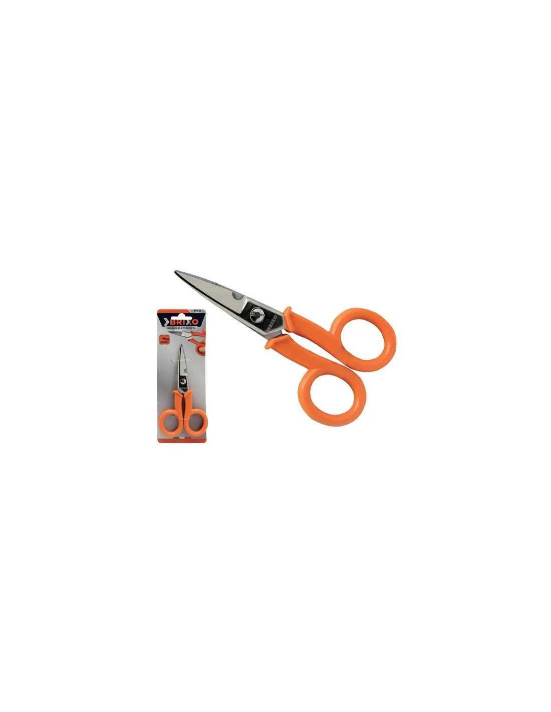 Forbici elettricista Brixo con corpo interamente in acciaio, lame nichelate e manici ricoperti in PVC. Dotate di gola tagliafilo per un taglio preciso e professionale.