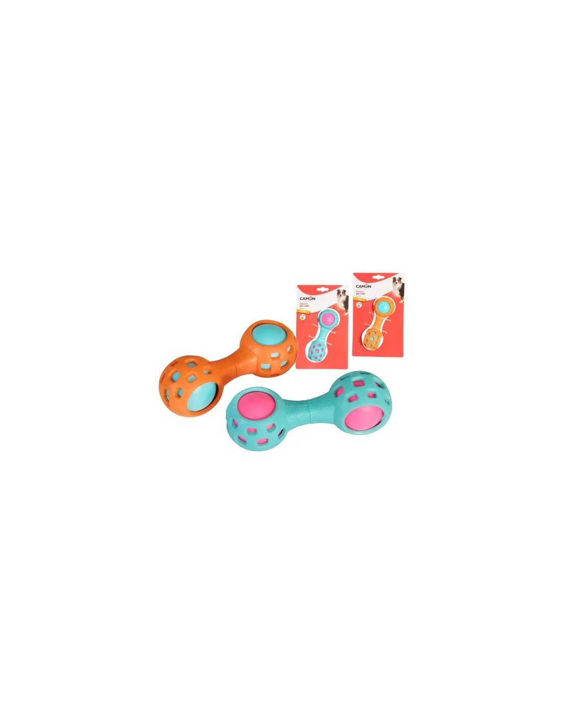 GIOCHI CAMON OSSO P/CANE è un divertente giocattolo per cani realizzato in TPR, una gomma termoplastica resistente. Il giocattolo presenta due palline con squeaker all'interno alle estremità, perfetto per intrattenere il tuo amico a quattro zampe.