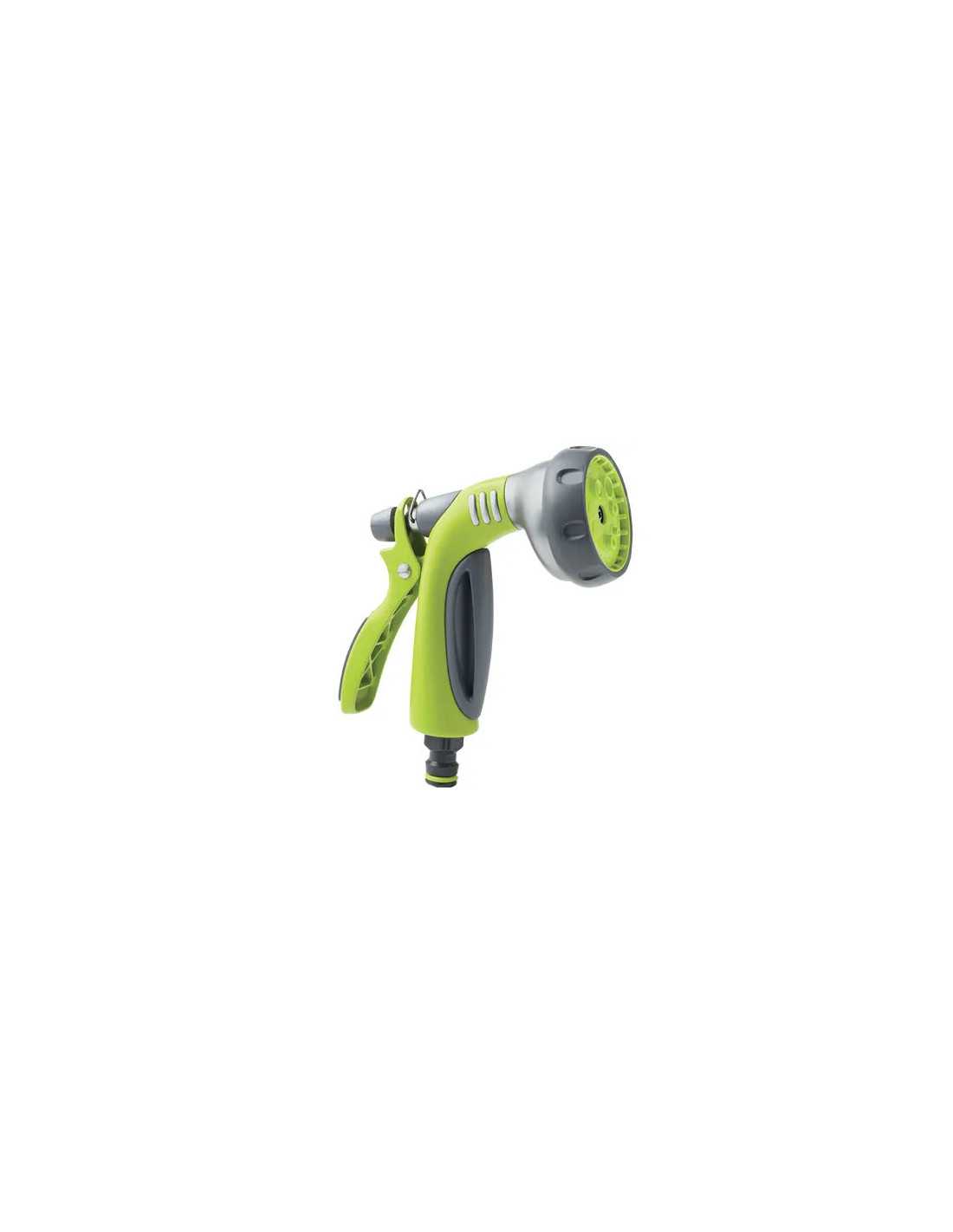 La pistola multifunzione G.F. è caratterizzata da una struttura robusta in metallo ricoperta da morbida gomma antiscivolo, che garantisce una presa salda e confortevole durante l'utilizzo. Il selettore a rotazione offre la possibilità di scegliere tra 8 diversi getti, permettendo di adattare il flusso d'acqua alle diverse esigenze. Inoltre, la leva di regolazione posteriore consente di bloccare facilmente il getto selezionato, assicurando una maggiore precisione e controllo.