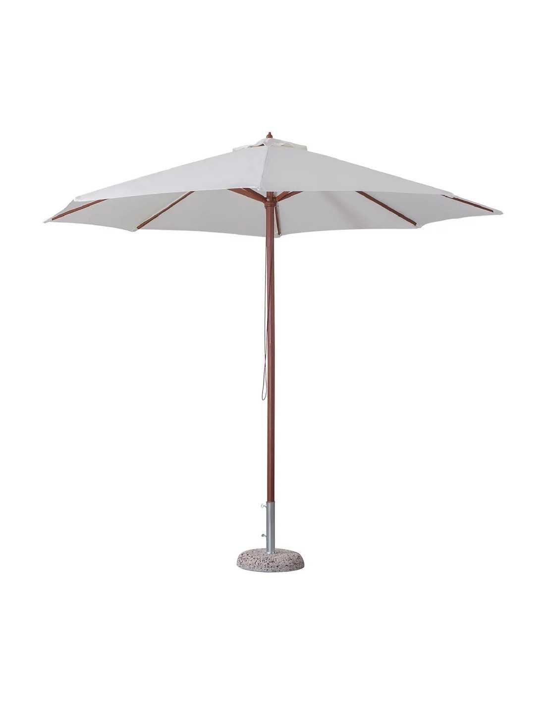 OMBRERLLONE IN LEGNO è un elegante ombrellone da giardino con struttura in legno e tela in poliestere. Ideale per creare un'area ombreggiata e confortevole all'aperto.