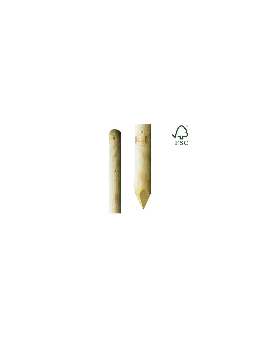 Pali LASA impregnati tondi a punta realizzati in legno di pino con trattamento autoclavato per una maggiore resistenza agli agenti atmosferici, funghi e insetti. Il legno proviene da foreste certificate FSC® per un approccio sostenibile all'ambiente.