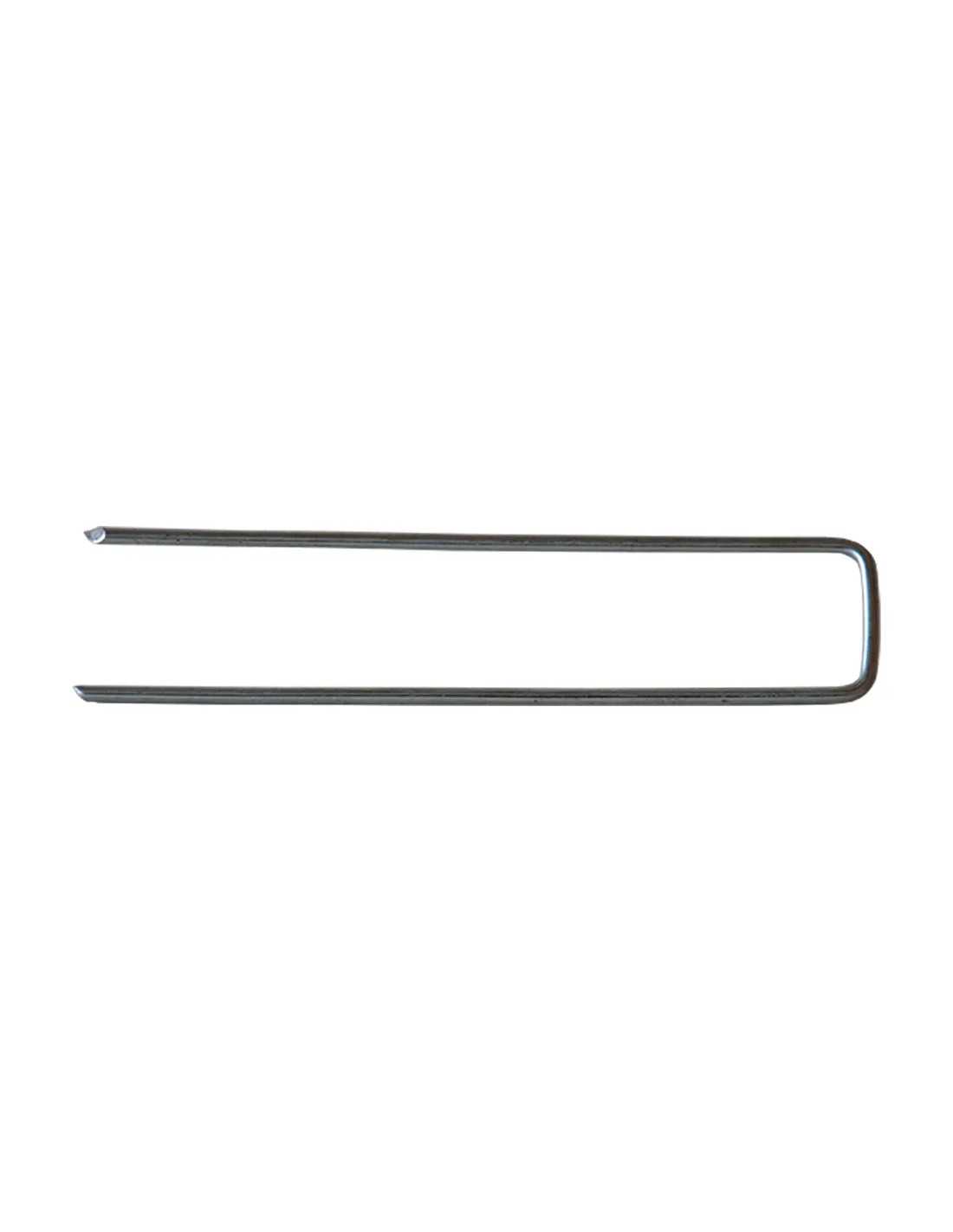 PICCHETTO FERMARETE A 'U' è un pratico accessorio zincato, ideale per fissare con sicurezza reti e teli nel terreno. La sua testa tonda garantisce una stabilità ottimale. Dimensioni standard.