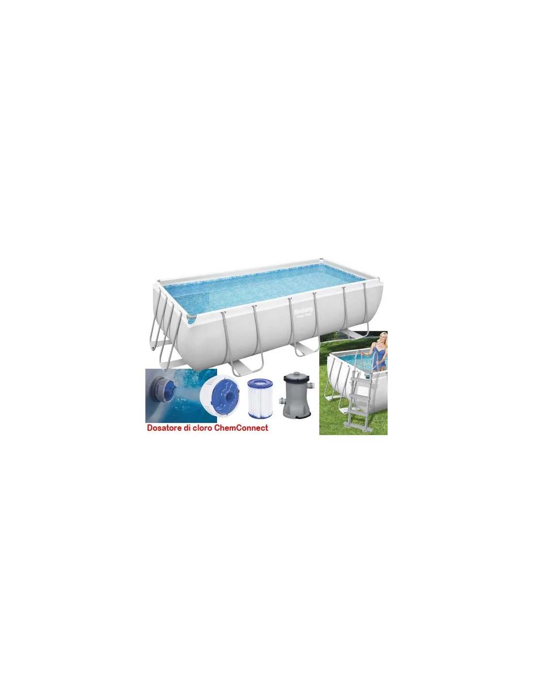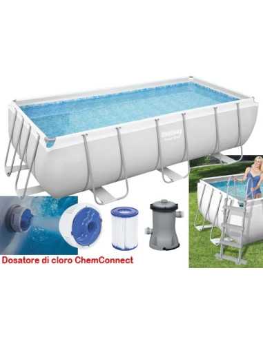 Le piscine rettangolari Power Steel BestWay 56441 56456 sono la soluzione perfetta per rinfrescarsi durante le calde giornate estive. Realizzate con una struttura di metallo resistente e pareti in PVC, queste piscine sono dotate di pompa di filtraggio per mantenere l'acqua pulita e cristallina. Il dosatore chimico Chemconnect garantisce una distribuzione costante del cloro, mentre la scaletta di accesso facilita l'ingresso e l'uscita dall'acqua in totale sicurezza.