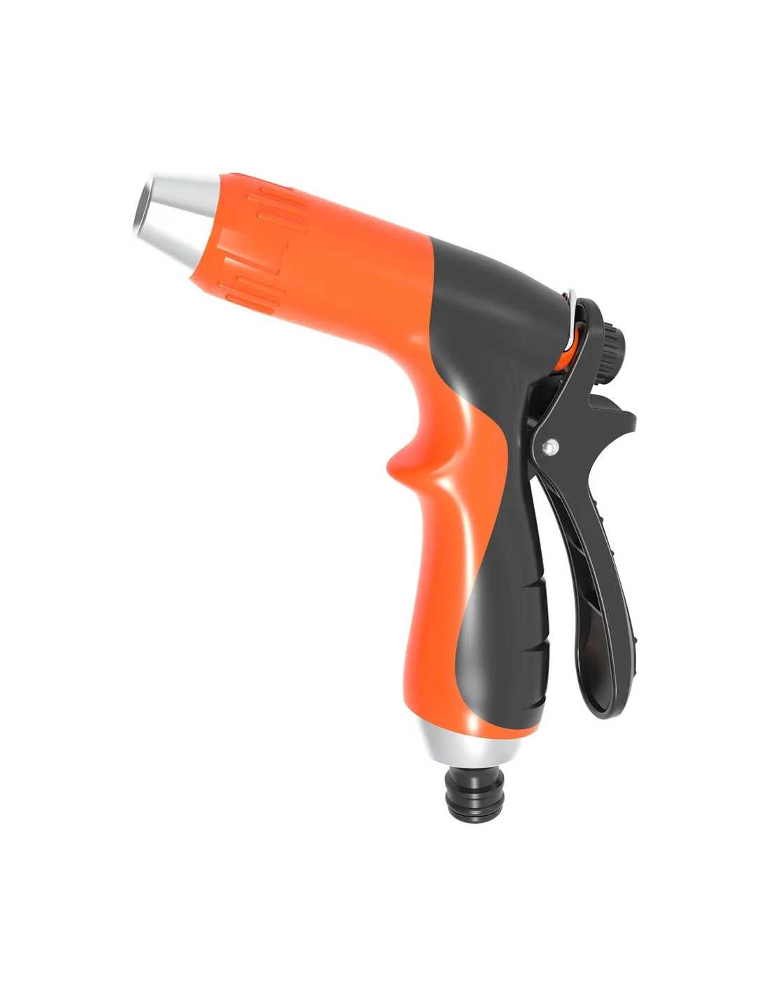 PISTOLA DA GIARDINO METAL è un pratico attrezzo per l'irrigazione del giardino, con corpo in metallo e impugnatura ergonomica in plastica. Dotata di leva di regolazione del flusso d'acqua e dispositivo di fissaggio del getto desiderato, può emettere un getto concentrato o diffuso. Ideale per ogni tipo di irrigazione, è facile da utilizzare e comoda da impugnare.