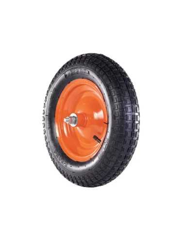 Ruote pneumatiche Brixo 350x80 con cuscinetto ideali per carriole. Complete di cerchio, mozzo con cuscinetti a sfera e pneumatico tacchettato. Perfette per carriola ns. cod. 280015 e 280017.