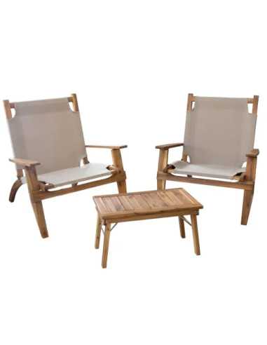 Set Garden Wood Cotton Club Flamenco è un elegante set da giardino composto da un tavolo e due poltrone, perfetto per creare un'atmosfera accogliente all'aperto. La struttura in acacia oliata si abbina perfettamente alle sedute in cotone e poliestere, per un look naturale e raffinato.