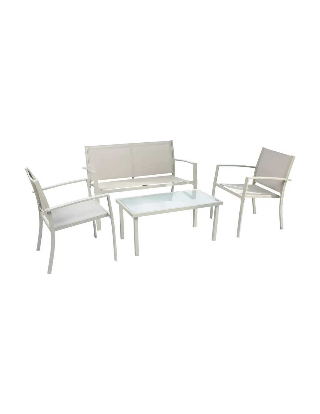 Composto da poltrone e divanetto con struttura in tubo di acciaio verniciato, il set dona un tocco di eleganza e modernità al tuo giardino. Il tavolino rettangolare con piano in vetro temperato completa l'insieme in modo raffinato.