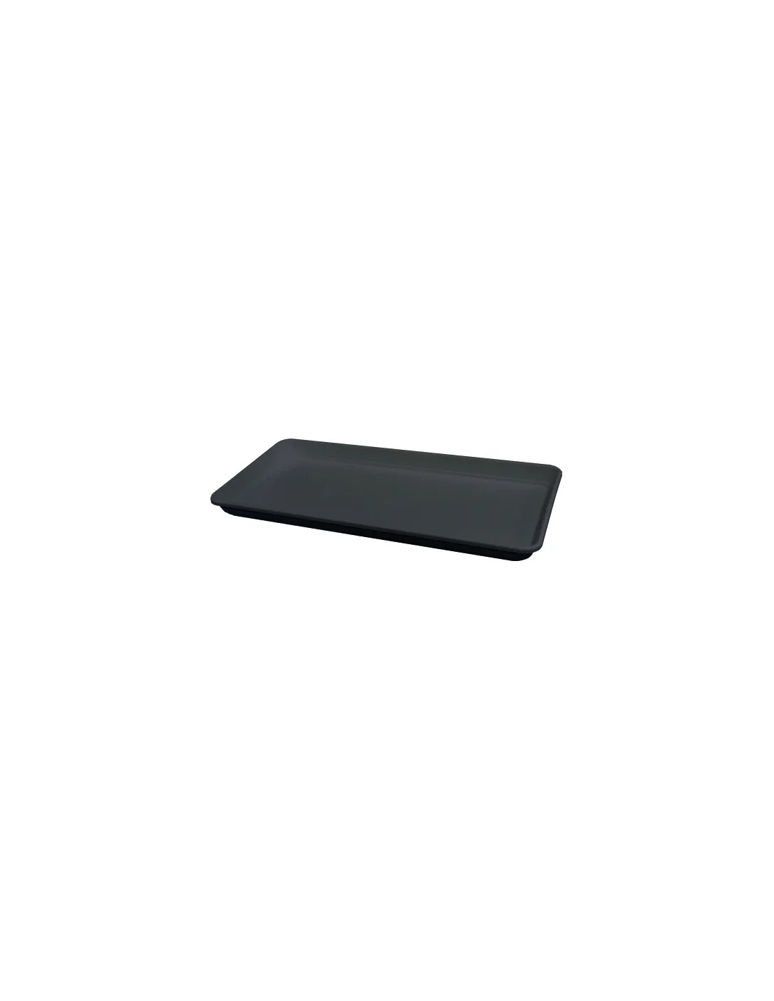 Sottovaso rettangolare festonato in resina di colore grigio antracite, ideale per vasi dallo stesso colore.