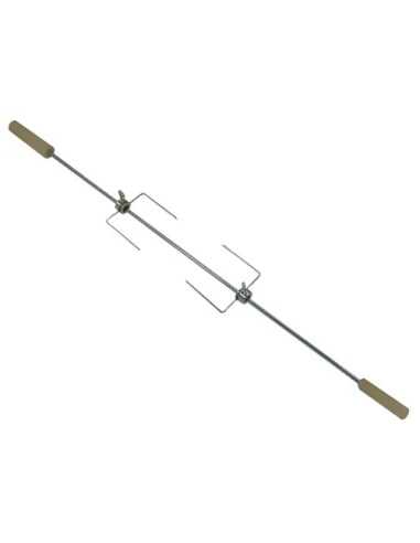 Spiedi per barbecue con doppio manico in legno, ideali per cuocere carne, verdure e altro cibo in modo uniforme e gustoso durante le grigliate all'aperto.
