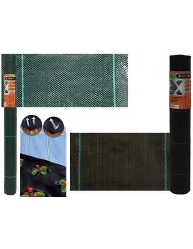Teli pacciamatura Brixo neri e verdi ideali per prevenire la crescita delle erbacce nelle colture e proteggere frutti e ortaggi dal contatto diretto con il terreno. Grazie alla loro resistenza ai raggi UV e alla capacità di drenare le acque piovane, favoriscono l'allineamento delle piante e sono riutilizzabili.