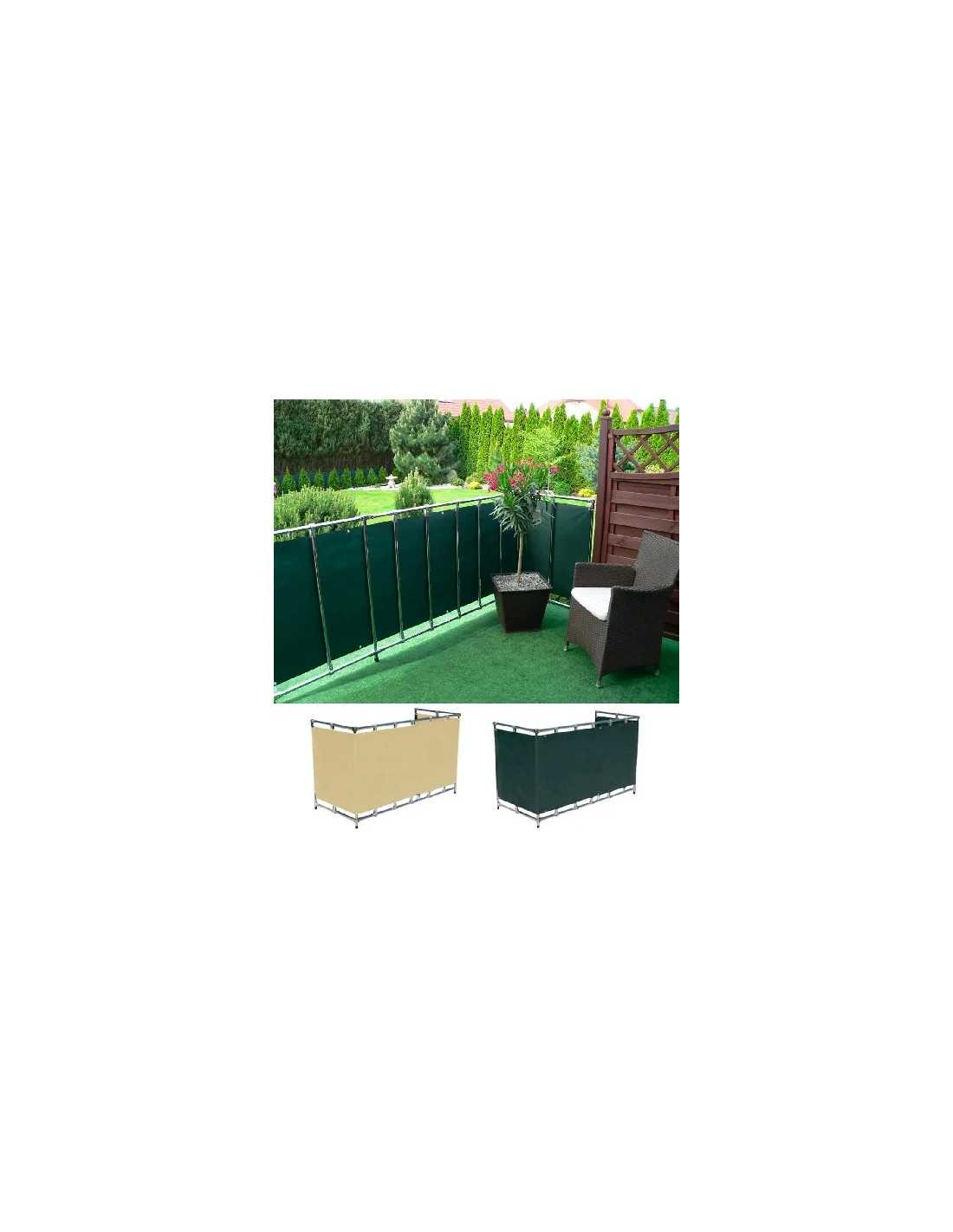 Un efficace tappetino frangivista in tessuto verde per proteggere il balcone dal vento e dagli sguardi indiscreti dei vicini. Ideale per ottenere privacy e protezione, può essere utilizzato su balconi, terrazzi e recinzioni grazie ai pratici occhioli inclusi.