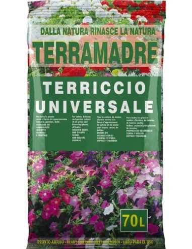 TERRICCIO UNIVERSALE è un mix di ammendanti naturali arricchito con concime organico per fornire tutte le sostanze nutritive necessarie alle piante. Adatto a tutte le stagioni e a tutte le piante da interno, balcone e giardino, favorisce l'attecchimento rapido grazie al miglioramento dell'aerazione e del drenaggio del terreno. Pronto all'uso per impieghi hobbistici.